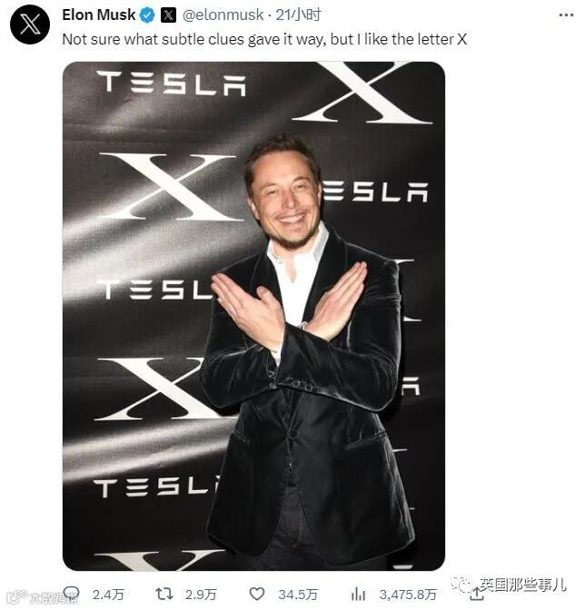 就连马斯克自己今天也调侃了一句:不确定是什么微妙的线索,但我喜欢字母“X”。
