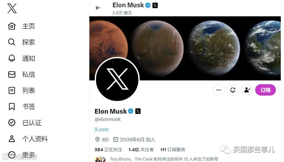 (马斯克换了头像,左上角的Logo也换成了X,图片来自Twitter)
