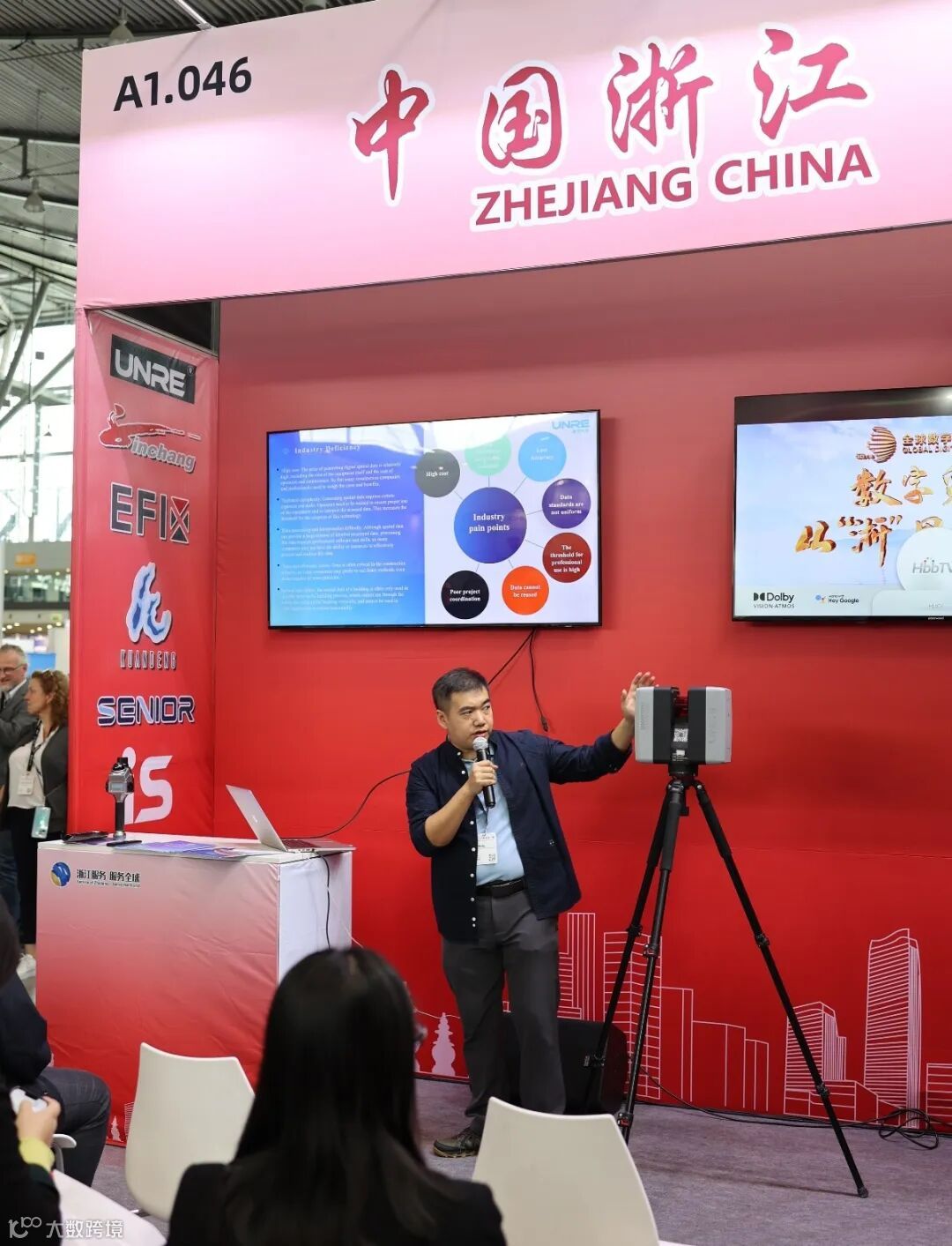 同时,盎锐科技还作为浙江省商务厅主办的“2024年浙江服务贸易(德国)测量测绘展览会”的展中展亮点企业受邀参展。在这一平台上,盎锐科技不仅展示了自身在三维扫描技术领域的最新成果,更通过公司副总裁孟煜博士的精彩发言,向全球业界传递了公司的发展理念与未来愿景。