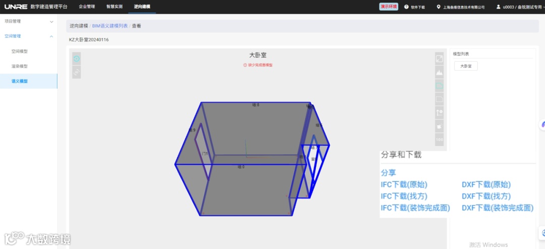 1.新增下载ifc/dxf的功能、语义建模模型可视化功能(包括控制线、一米线、完成面等信息)
