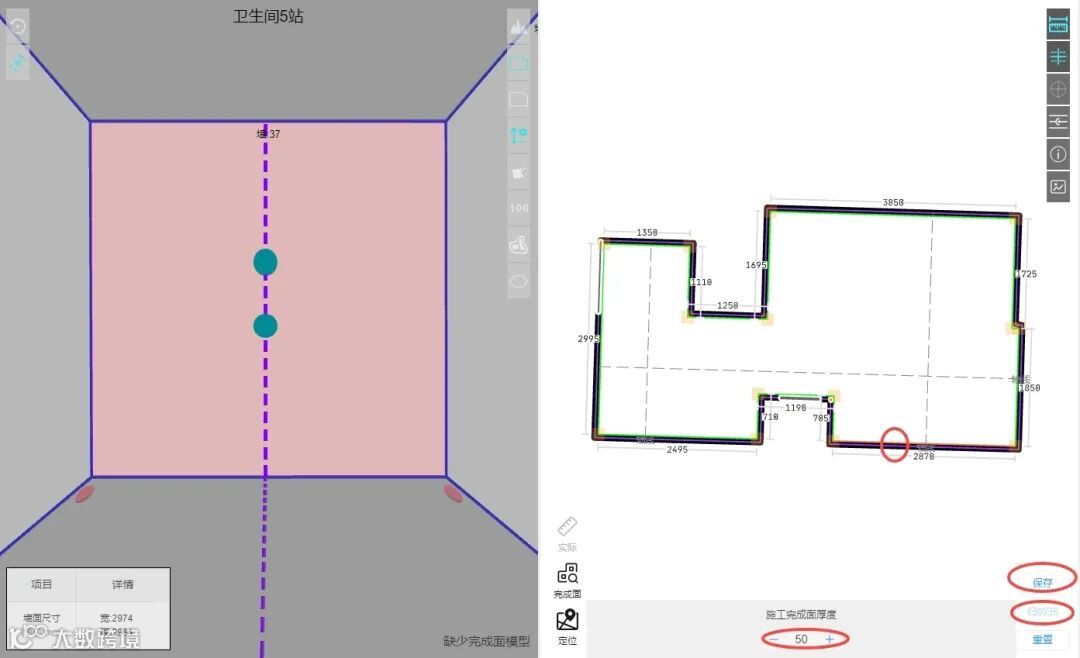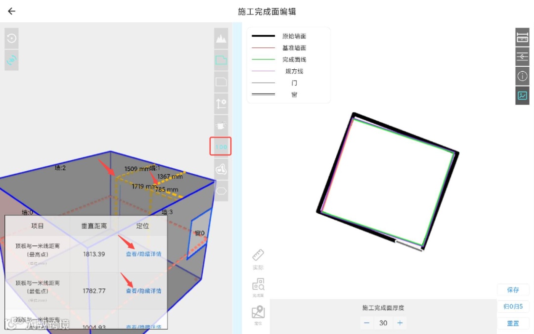 2.增加顶板/地板最高点和最低点距离一米线的定位功能