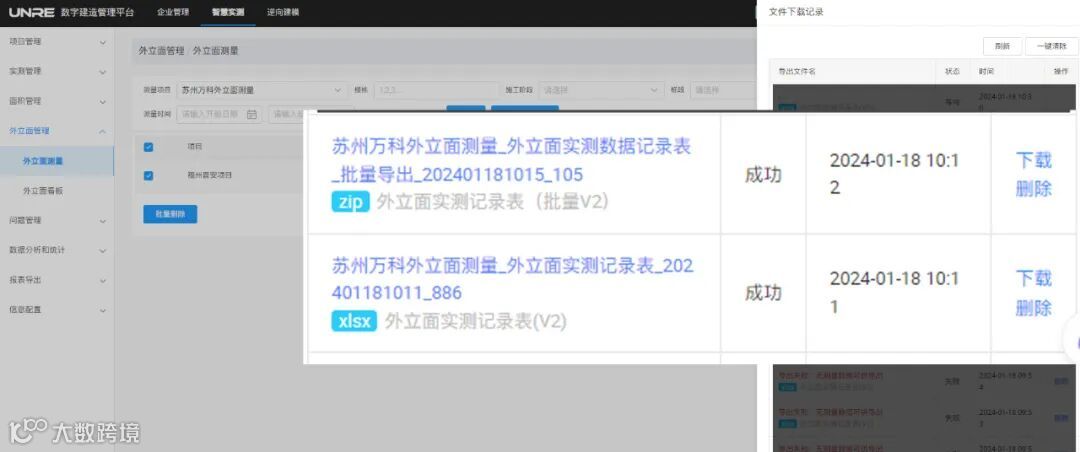 1.新增外立面实测数据报表、楼栋测量点合格率报表以及项目测量点合格率报表