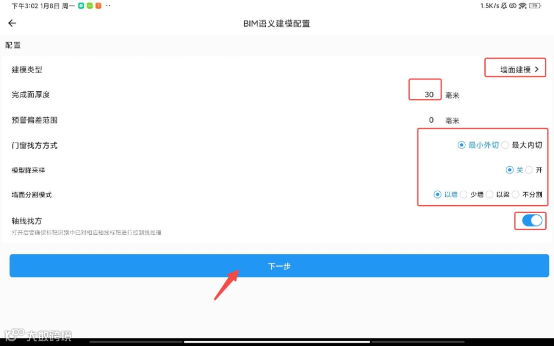1.语义建模准备包括轴线录入,标靶确认,控制线生成
