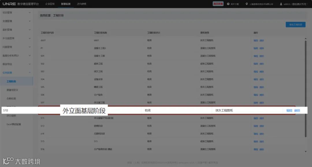 2.企业初始化中新增外立面施工阶段