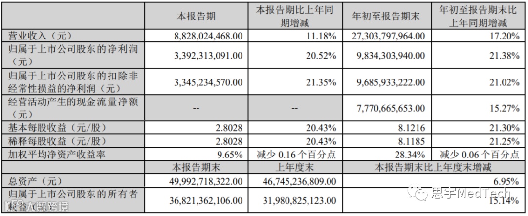 2023年10月28日,迈瑞医疗(300760)发布了2023年第三季度报告: