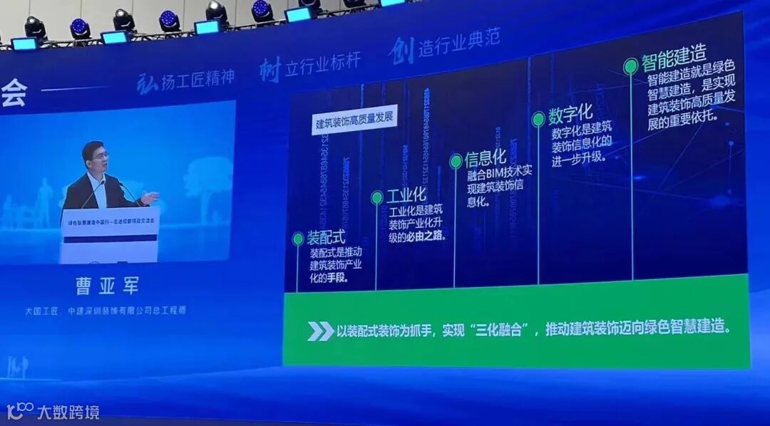 “大国工匠”曹亚军提到,以装配式装饰为抓手,实现“三化融合”,推动建筑装饰迈向绿色智慧建造。