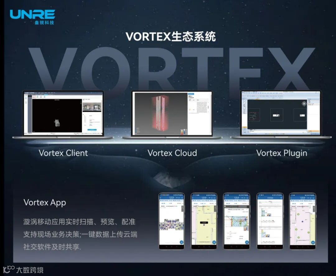 通过自主开发的VORTEX(VORTEX Client、VORTEX Cloud、VORTEX APP、VORTEX Plug-in)系列软件产品,支持与主流工程软件(如AutoCAD、Revit等)无缝对接,覆盖从数据采集到建模分析的完整工作流,极大简化操作流程,提升工作效率。