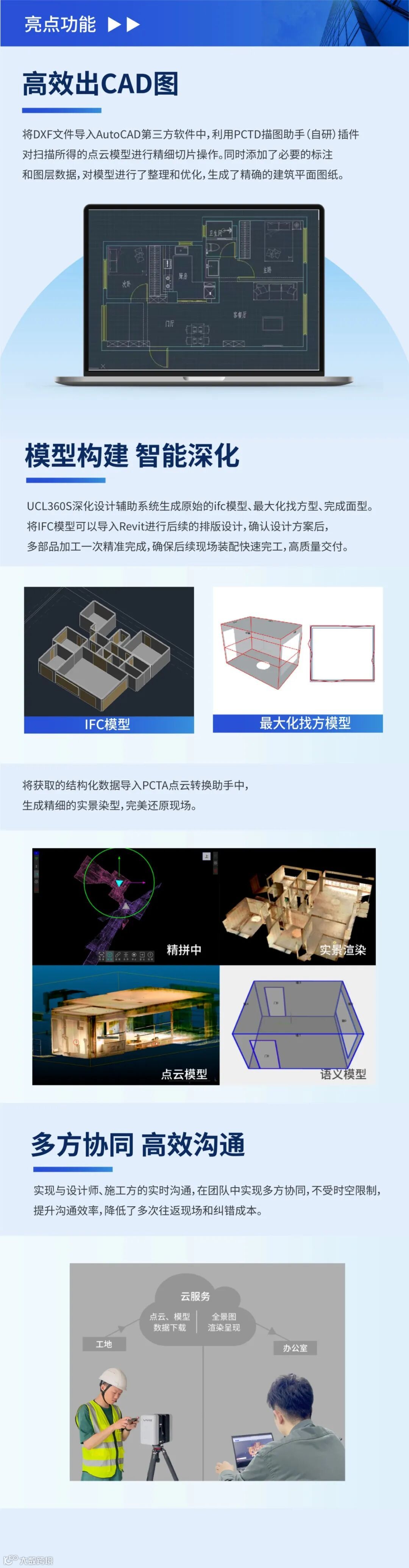 在数字化装修和装配式装修过程中,UCL360PRO系列可用于精准测量现有建筑结构和空间尺寸,生成高精度的三维模型,为深化设计、加工和安装提供基础数据支持。