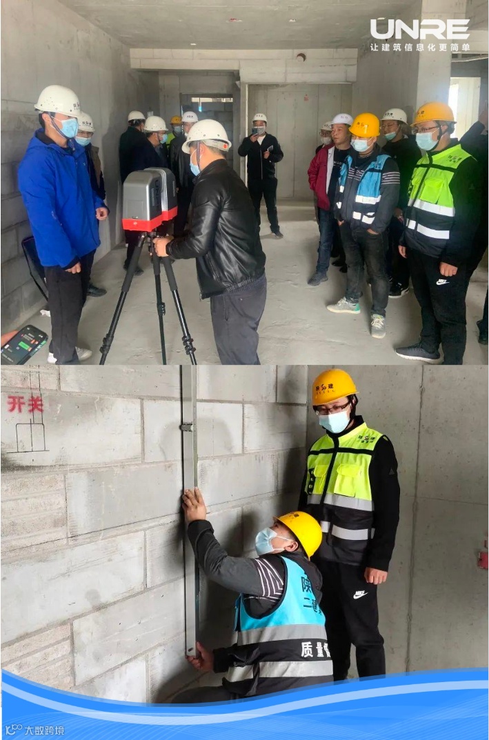 最后大家在现场观摩了激光扫描仪实操,并进行了人工与激光扫描仪实测对比,两者数据基本吻合。项目总包单位陕二建管理人员表示激光扫描仪数据上传融创智造,保证数据真实有效,大幅度提升现场实测实量效率。其他总包单位参会人员深有感触,表示今后在项目上将积极推广和应用智慧工地。