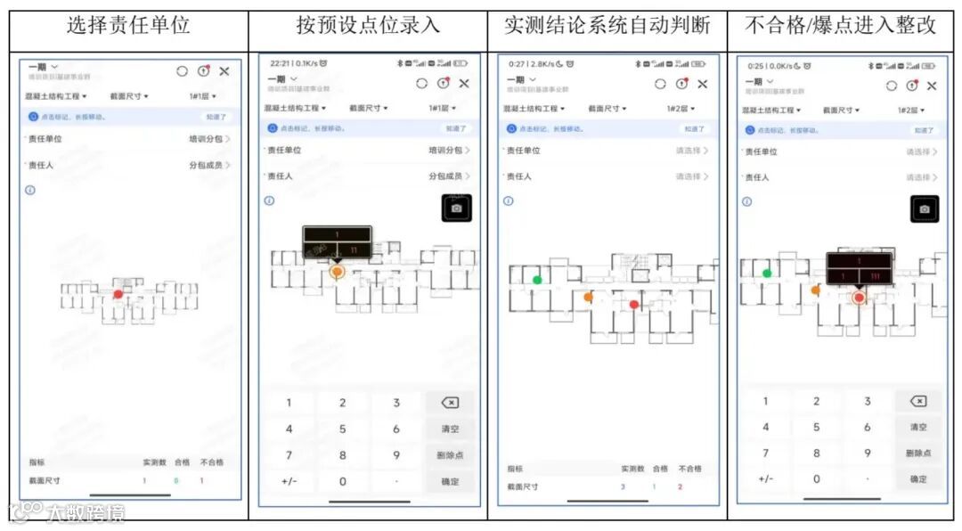 一线测量人员使用「河狸云」APP便可以直接控制测量机器人进行测量,测量所得数据直接在APP内查看。实现了从数据采集到数据档案的全自动实测实量。