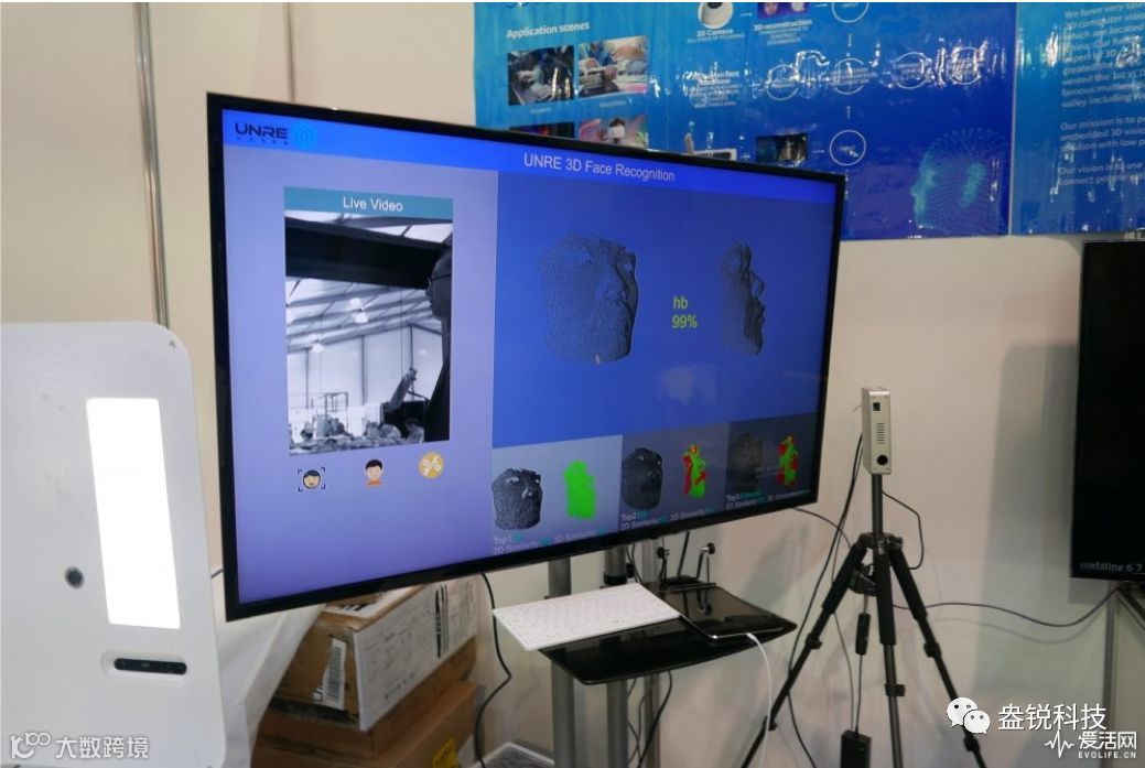 基于这类平台的技术,盎锐在展台中为我们展示了Face ID以及3D高精度实时扫描设备、360度全身扫描系统、3D多摄像头瞬时人像抓拍系统以及3D高精度摄像头模组等产品以及技术。