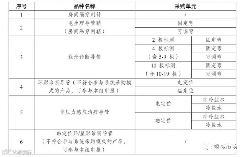电生理类采购品种为: