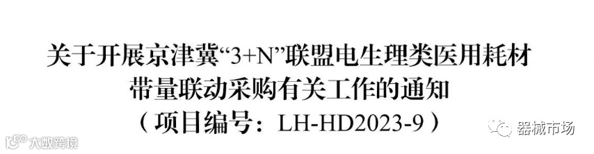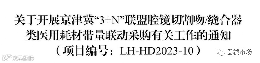 2023年8月24日,京津冀医药联合采购平台发文,开展京津冀“3+N”联盟腔镜切割吻/缝合器类和电生理类医用耗材带量联动采购。