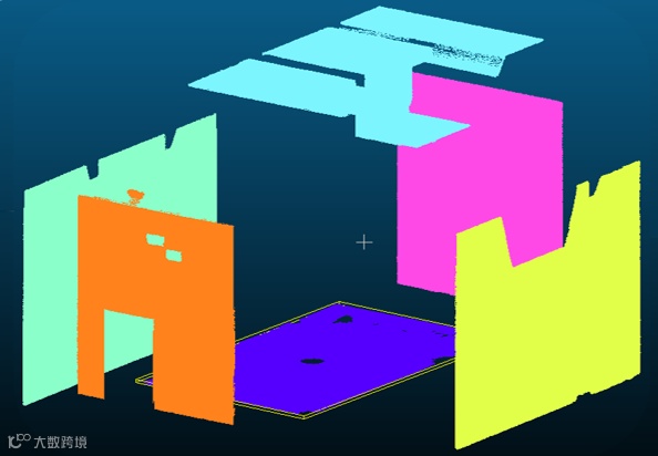 人工智能室内场景语义分割,解决建筑实测实量的3D特征识别与提取,自动识别分割建筑物的各个平面,自动识别门、窗、洞等常见的物体等,无需人工辅助识别渲染。