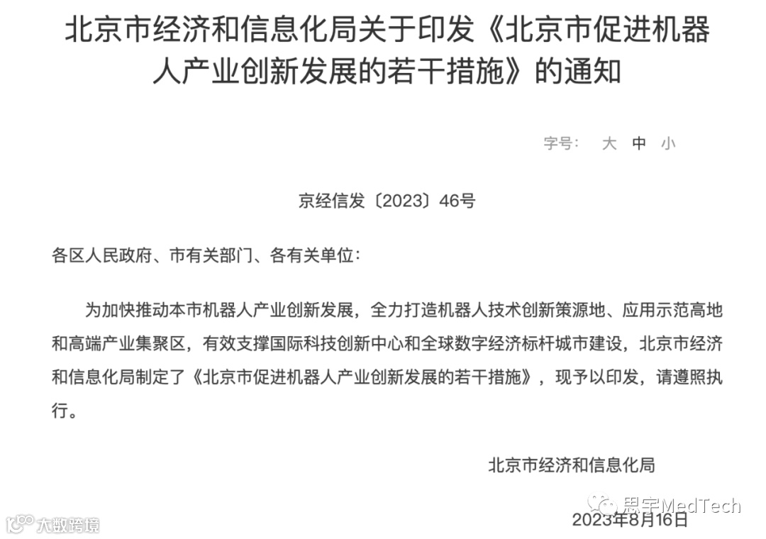 日前,为加快推动北京市机器人产业创新发展,全力打造机器人技术创新策源地、应用示范高地和高端产业集聚区,有效支撑国际科技创新中心和全球数字经济标杆城市建设,北京市经济和信息化局制定了《北京市促进机器人产业创新发展的若干措施》。