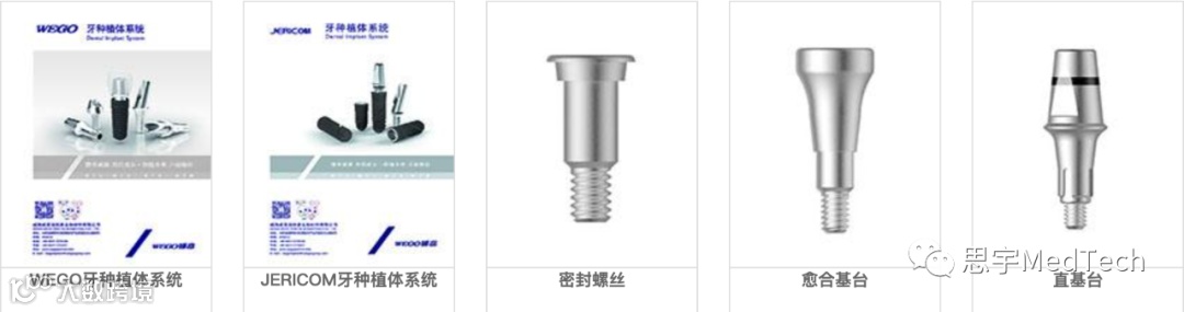 威高洁丽康始终坚持产品创新,与北京大学口腔医院、四川大学华西口腔医院,武汉大学口腔医院、中科院长春应用化学研究所等多家院校建立了长期稳定的合作关系。据威高洁丽康官网显示,目前公司产品主要有WEGO牙种植体系统与JERICOM牙种植体系统两大类: