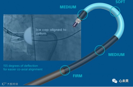 输送鞘(POLARSHEATH)最大设计特点是弯曲角度达到155°,这将在消融右下肺静脉变得顺利,增加了对准能力,使球囊定位更容易。