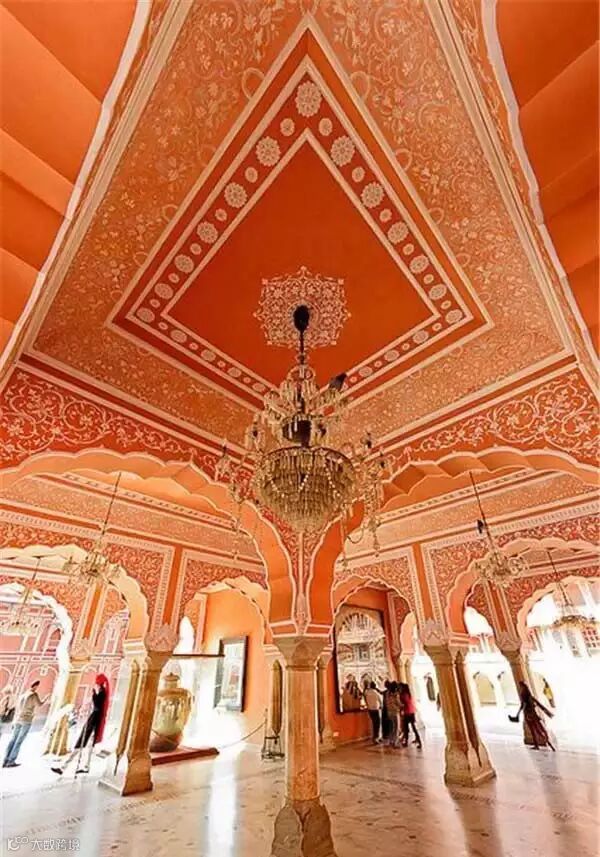 斋普尔有着粉红色的建筑风格,屋顶、墙壁,一律粉红色,