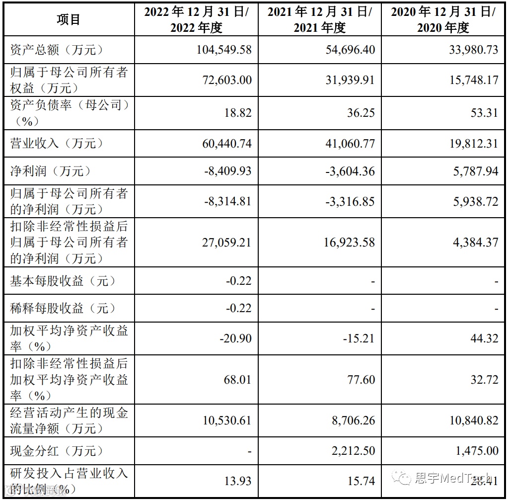 2020-2022年,公司实现营业收入分别约为1.98亿元、4.11亿元及6.04亿元,实现扣除非经常性损益后的归母净利分别约为0.44亿元、1.69亿元和2.71亿元。关键财务数据详情如下: