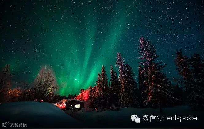 这 时候北极天幕上极光大戏正在隆重上演,极光呈现出诡异的绿色和粉色,那是太阳8分20秒以前的一次巨大爆炸后带电粒子穿越15万公里到达地球和大气层的氧 气和氮气发生撞击的结果,他们在我的头顶上快速扭动变换着,犹如巨大的帘幕被上帝之手抖动。更诡异的是,极光如同月光一般明亮,将湖面照亮成绿色,让我感 到生存在我自己想象中的一个超现实画面中,因为周围都是白雪,我看不到任何有意义的细节,除了远处那些黑色不动的柏树,就像是冷漠的岩浆一样,有时候我甚 至可以看到我的自己的影子,我不知道应该怎样表达这个感受,反正周围没有人,我不知道是不是应该喊叫。