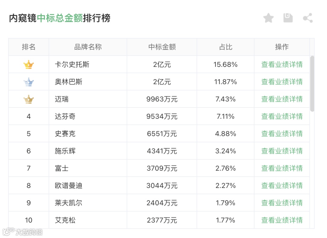 在卡尔史托斯Top10的中标企业中,平台型公司占3家,经销商占7家。