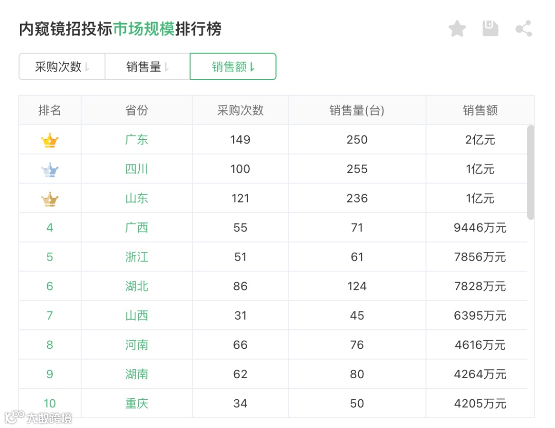 2023上半年内窥镜区域规模排行榜Top10