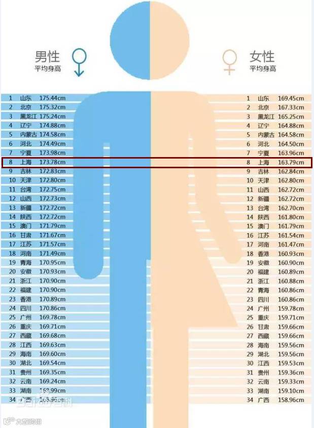 男性平均身高是173.78cm,女性163.79cm