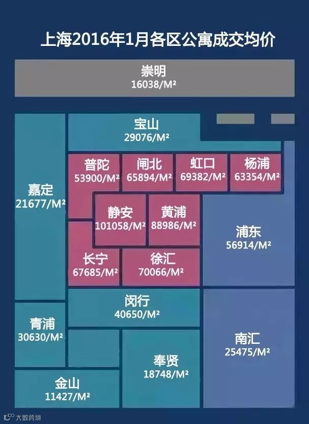 上海2016年1月各区公寓成交均价一览