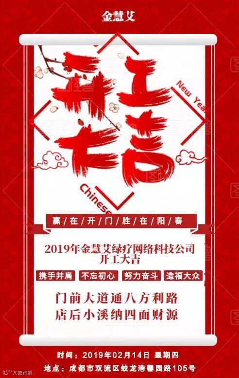 今天是2019年开工的第一天,公司全体员工向新老用户拜年!四川省金慧艾绿疗网络科技有限公司以“为基层医疗机构服务”为公司使命,专注于帮助基层医疗降低经营成本提高诊疗水平。以《不打针医疗健康平台》软件为核心产品,形成了面向基层诊所、药房、卫生院等提高自主知识产权,提供绿疗产品及其他医疗耗材的零售和批发服务,是国内新一代具有影响力的基层绿色医疗及医疗耗材提供商。我们是学习性的企业,是服务性的企业,我们将一如既往,以最优质的状态、最饱满的热情服务于大家、服务于市场,愿各位在2019年心想事成,财源广进!希望新的一年大家“猪”事顺利!