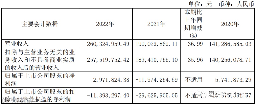 从营收和利润方面看,公司本年度实现营业收入2.60亿元,同比增长36.99%,净利润297.18万元,同比扭亏为盈,去年同期亏损1197.43万元,基本每股收益为0.01元。