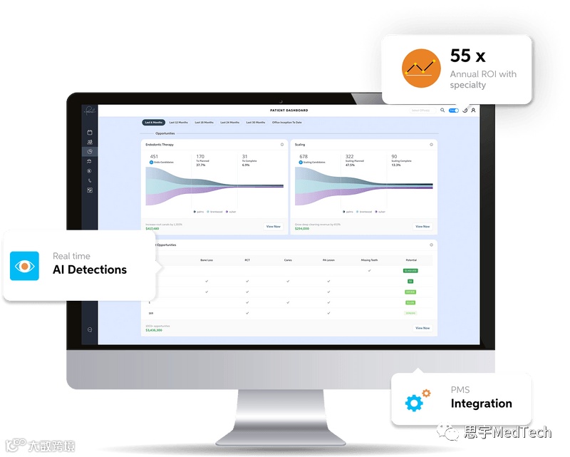 Second Opinion是业内第一个也是唯一一个获得美国食品药品监督管理局(FDA)许可的椅旁人工智能软件,利用计算机视觉技术,帮助牙医在牙科X光片中发现多种疾病和其他情况,可以识别包括龋齿、牙石和根尖脓肿等在内的多种常见牙科病症。