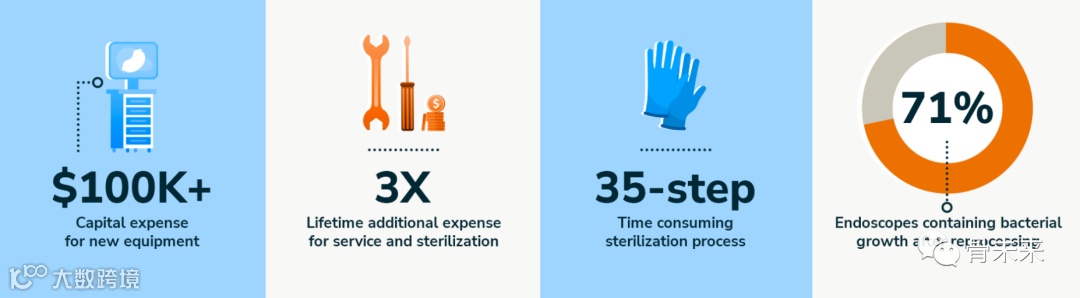 传统可重复用内窥镜结构复杂,很难彻底清洗和消毒。相关研究显示,内窥镜在医疗器械交叉感染风险排行榜中位列第一,70%以上的内窥镜存在无法彻底灭菌的问题,接近四分之三的常用内窥镜被细菌污染。由此内窥镜的使用安全成为不可回避的问题。