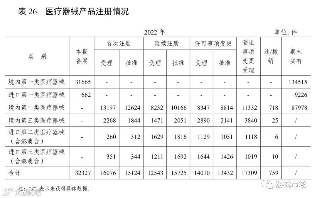2023年4月19日,国家药品监督管理局(NMPA)发布《药品监督管理统计年度数据(2022年)》,公开了医疗器械相关受理、审批、监管等情况。