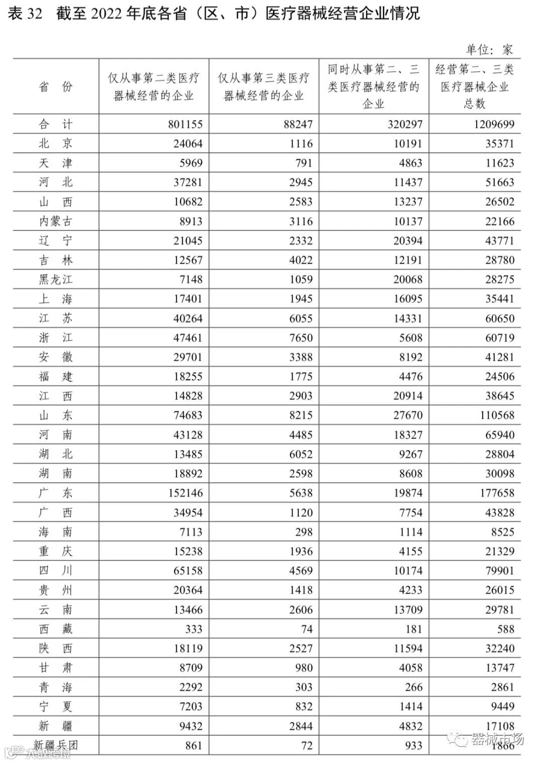 医疗器械生产企业32632家;