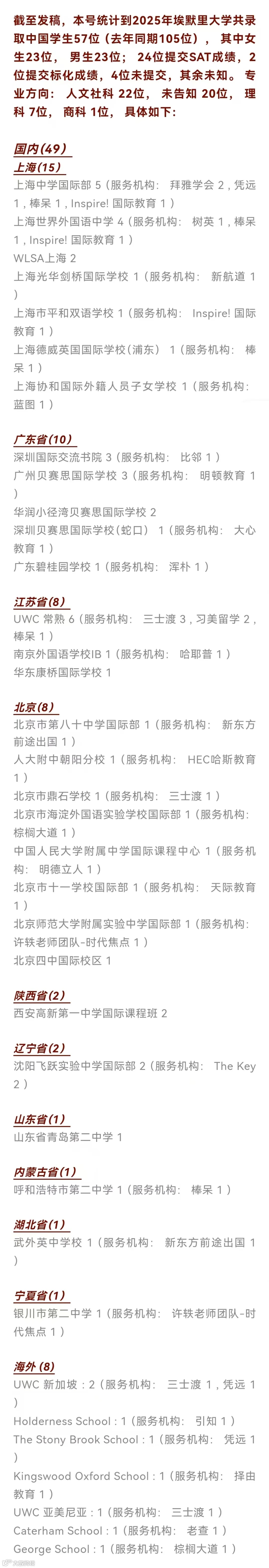 当地时间12月13日,埃默里大学、东北大学等院校向早申学生发出招生通知。所有高校均可通过我们看到中国学生录取信息(数据实时更新):