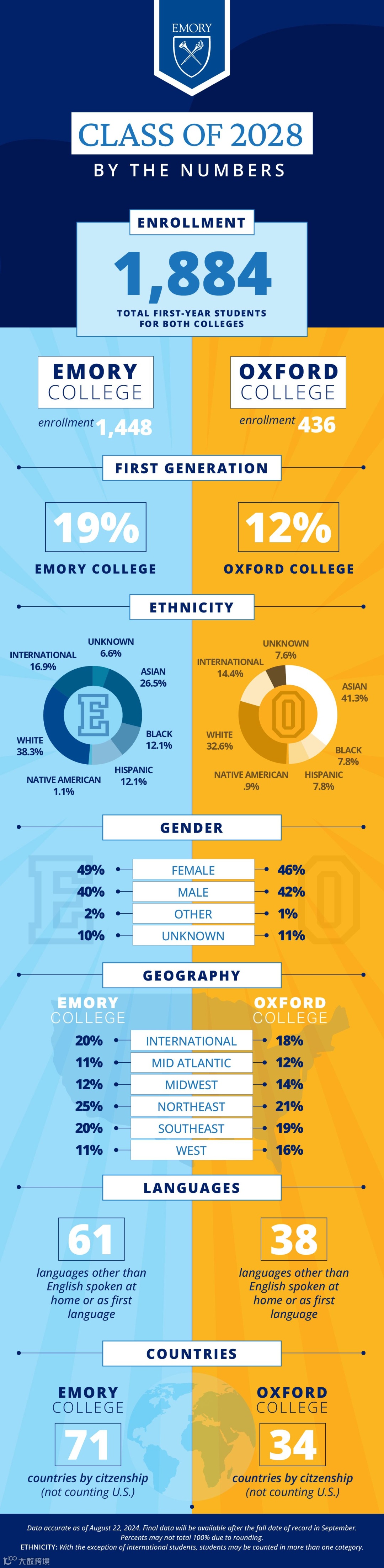 公开数据显示,埃默里2028届的整体录取率仅为14.5%,显然选择ED1的申请人具有巨大的录取优势。本申请季和下个申请季埃默里大学继续采取标化可选政策,校方称将于年内决定该政策是否继续沿用至2030和后续申请周期。去年ED1轮次中,39%的录取学生未提交标化分数。