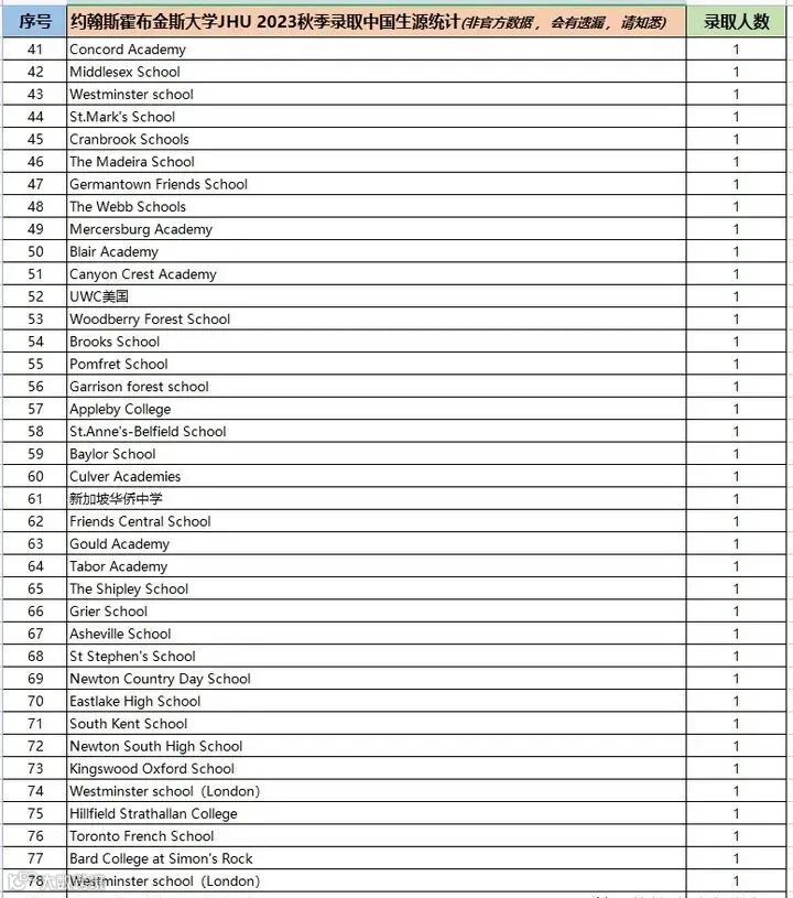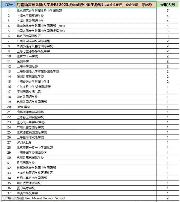 4)约翰霍普金斯JHU2023fall入学的108位中国籍学生分布高中以及两位位学生案例,招生官愿意尝鲜!!