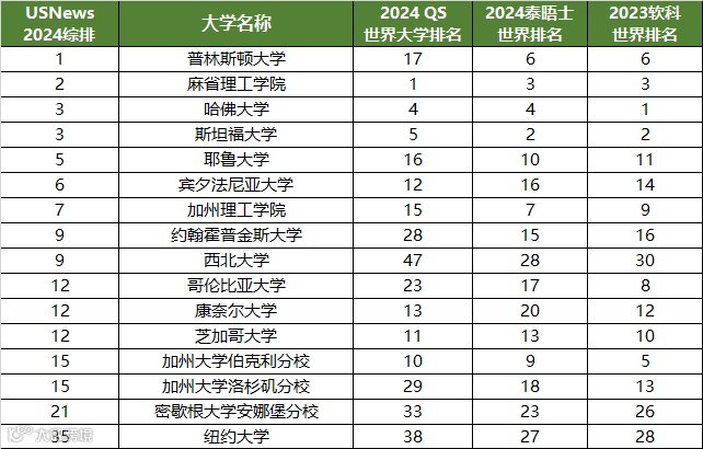 在U.S. News综合排名中多年稳居全美第1的普林斯顿大学,在QS世界大学排名中位列第17,在泰晤士和软科世界大学排名中也在5名开外。
