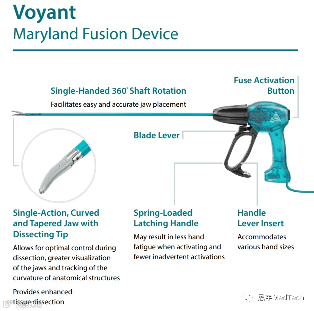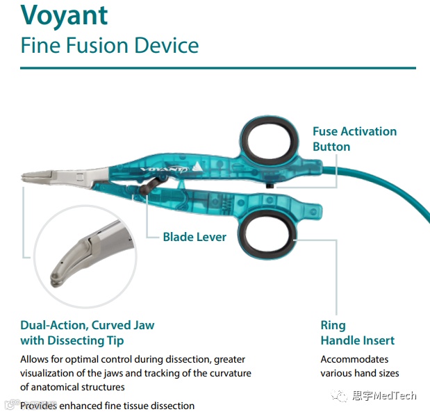 Voyant由刀头和主机组成,其中刀头由四款类型,分别是Voyant Maryland Fusion、 Voyant 5mm Fusion 、 Voyant Fine Fusion和Voyant Open Fusion 。这四款产品能够和美敦力Ligasure产品一一对应。所以才衍生出了上述起诉。