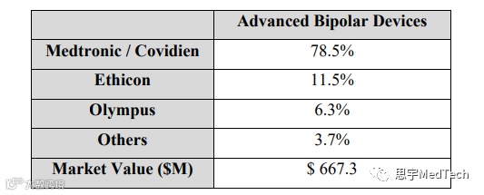 尽管有上述声称的好处,Applied Medical在市场上还是一家小公司,诉讼援引一份报告称,美敦力在6.67亿美元的先进双极设备市场中占有78.5%的份额,强生Ethicon和奥林巴斯分别占据第二和第三位,Applied Medical在美国市场占有约3%的份额。根据该公司的投诉,在欧洲,捆绑销售行为受到了更多的监管审查。在一些国家,上述比例可达到为50%。