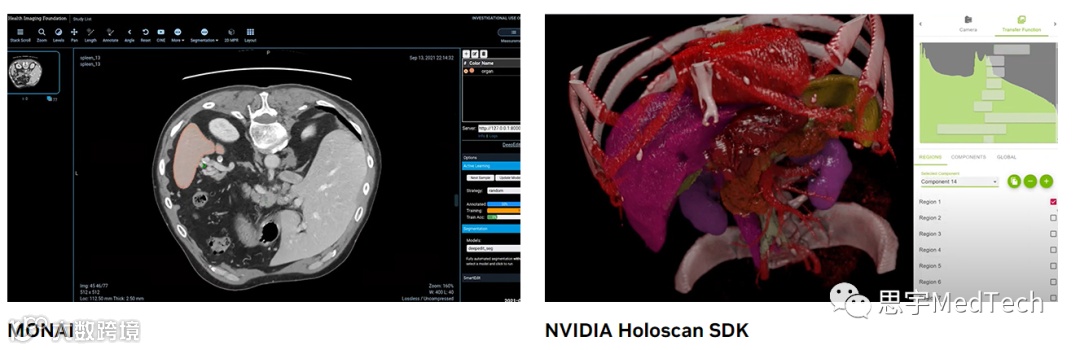 据悉,美敦力计划将NVIDIA holoscan(一款用于构建医疗设备的实时AI计算软件平台)和NVIDIA IGX(一款工业级边缘AI硬件平台)集成在其GI Genius人工智能辅助结肠镜检查系统上,为医生提供人工智能增强的诊断图像。而这两者便是NVIDIA Clara™医疗保健平台的一部分。