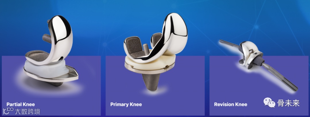 捷迈邦美膝关节植入物分为部分膝关节系统、全膝关节系统、翻修膝关节系统。