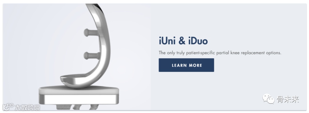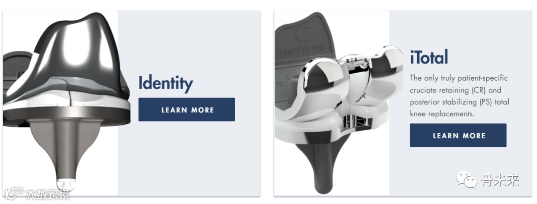 膝关节植入物iTotal系列产品包含了手术所需器械、定制的切割块和膝关节植入物,目前该系列产品有两款,即iTotal®CR和iTotal®PS。相比于标准化、批量生产的膝关节置换植入物,iTotal系列全膝关节置换系统的每一个股骨和胫骨植入物都是为患者量身定制。