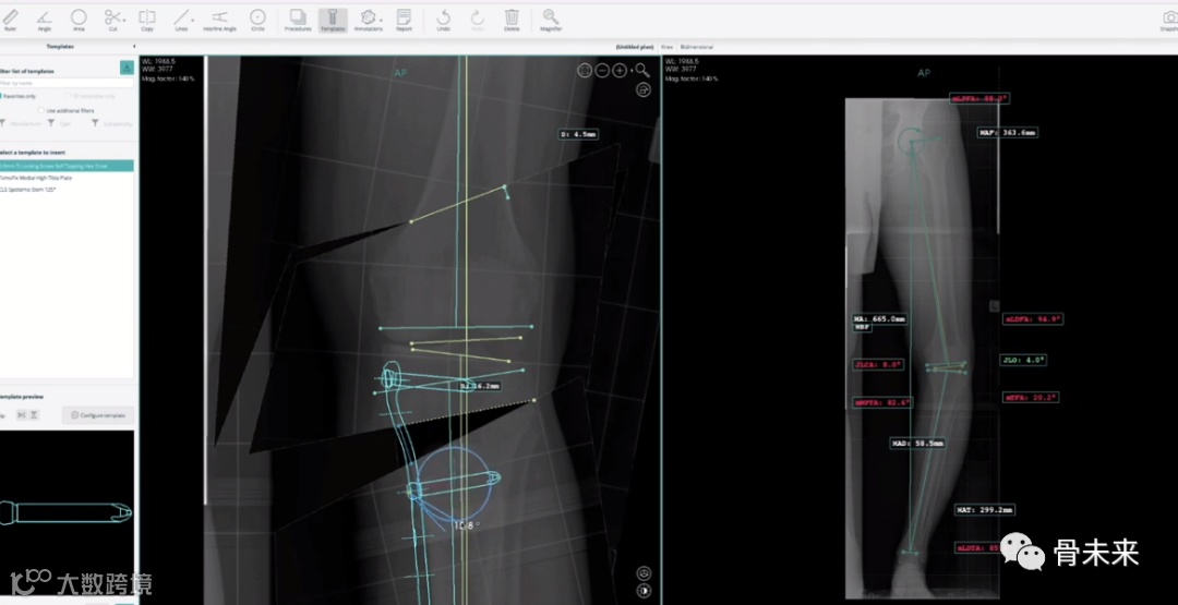 自动生成模板:PeekMed会根据医生所做的测量,自动将最合适的模板放置在正确的位置;