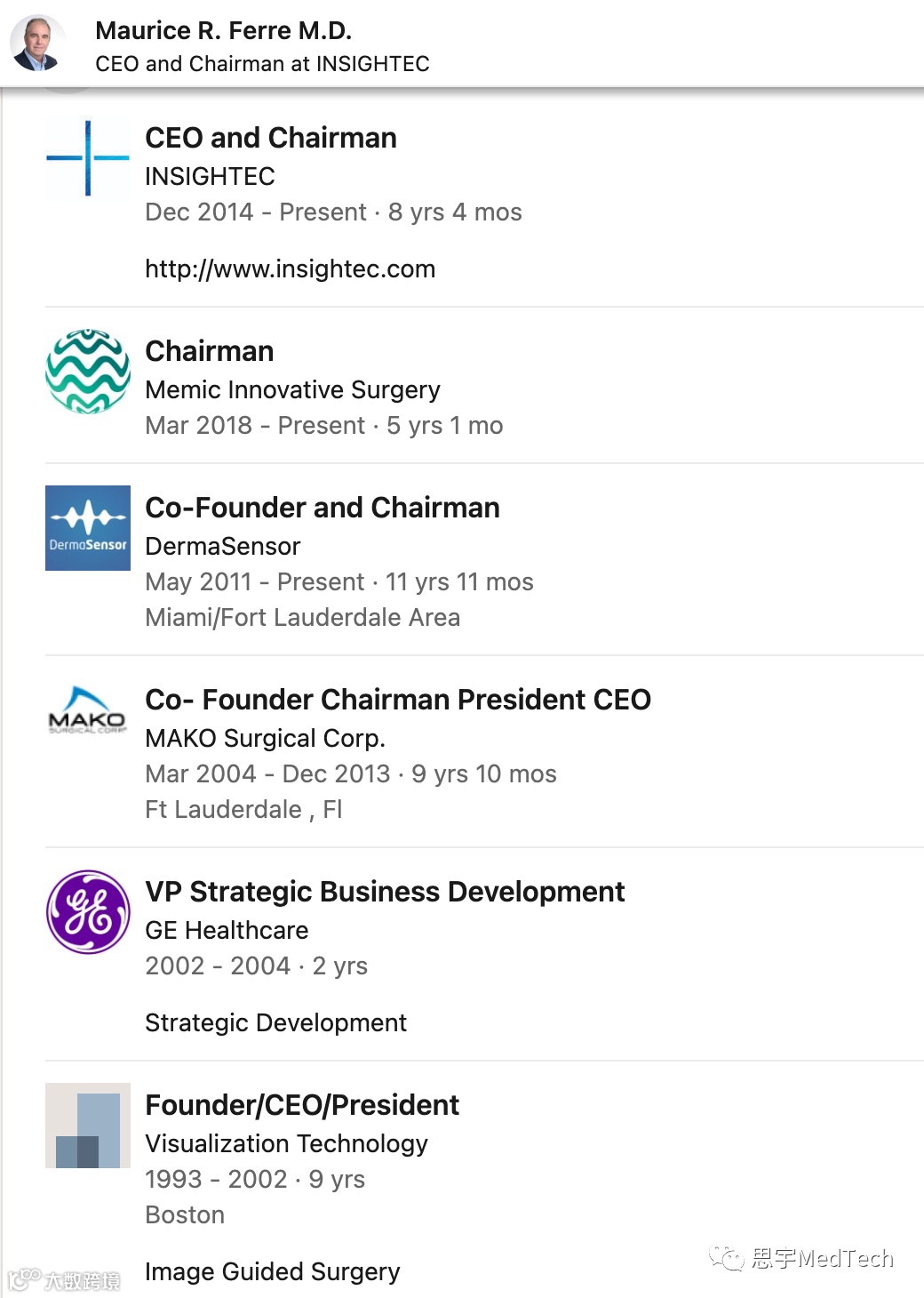 离开MAKO后,Maurice R. Ferré短暂休息了一段时间,就开始继续创业、投资、担任顾问……有一天,GE Healthcare Israel时任董事总经理的Morry Blumenfeld找到了Maurice R. Ferré问他愿不愿意加入Insightec帮助公司转型。