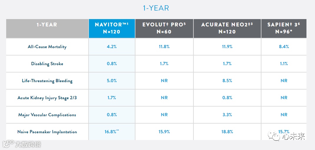 雅培公司在2022年5月公布的一年期数据也为Navitor系统提供相关支持。数据显示,Navitor在具有严重或极度手术风险的严重、有症状的主动脉瓣狭窄患者中,结果有所改善。Navitor系统在2021年获得了CE标志。