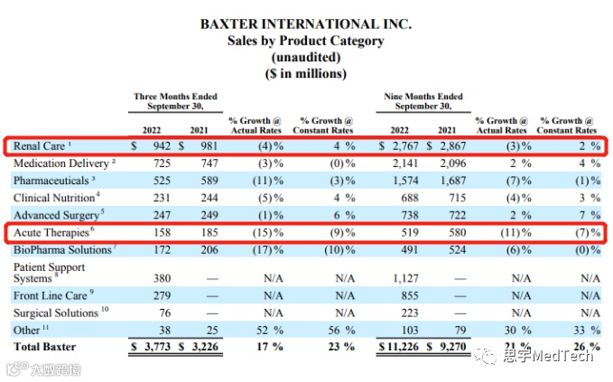 ▲百特各管线2022 Q3营收情况(图片来自官网)