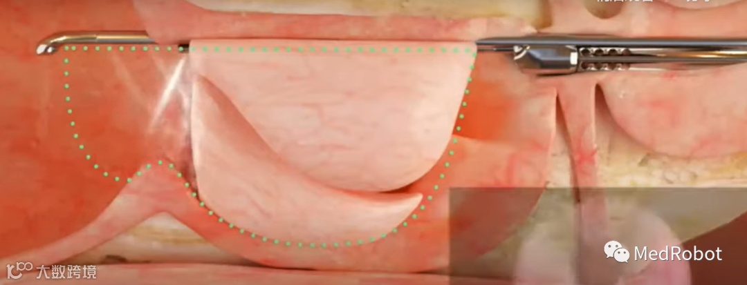 使用无热水刀的机器人组织切除术:治疗图完成后,使用机器人控制的无热水刀精确去除前列腺组织。机器人和水射流技术能够以极短的切除时间进行有针对性和可控的组织切除,适应不同前列腺尺寸和形状,并且降低对外科医生经验水平的依赖。