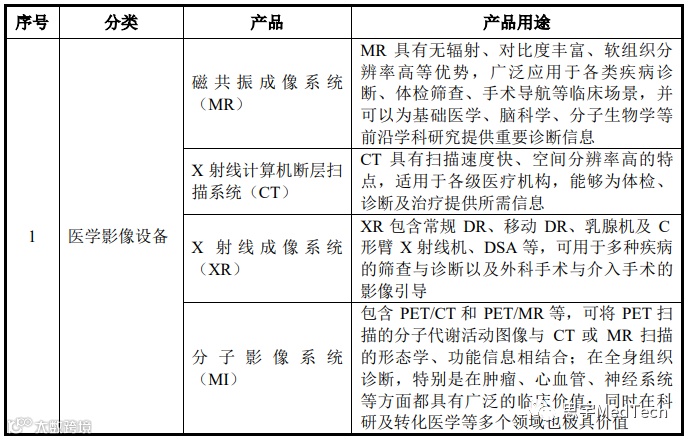 联影医疗自成立以来主要从事高端医学影像产品、放射治疗产品及生命科学仪器的设计、研发、生产、销售和服务,并配套智能化、信息化解决方案。2018年,公司为聚焦主业,剥离了规模较小的第三方影像中心和医疗人工智能业务。