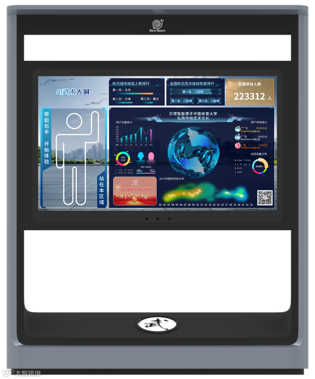 贝塔智能【AI武术大屏】通过人工智能AI大屏结合肢体识别与肢体捕捉算法等科技手段赋能传统武术文化,实现传统武术文化与现代科技融合。该项目应用已超300+地区落地,并已出口至美国、以色列等海外地区,贝塔智能为中国武术走向世界助力。